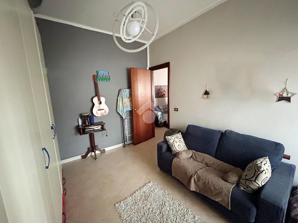 L'immobile si apre con un ingresso ampio, su un luminoso salone, ideale per momenti di relax e convivialità. La zona notte comprende tre grandi camere da letto, che offrono spazio e comfort, perfette per una famiglia o per chi desidera ambienti ampi e versatili. La doppia esposizione, sia sul prospetto che dalla parte interna, garantisce una luminosità naturale in ogni ambiente della casa, completano la proprietà due bagni funzionali e un ripostiglio.